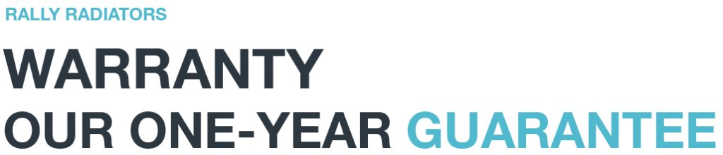 At RallyProducts we offer all our clients a complete one-year replacement warranty on all Rally products including our brakes, radiators, condensers, heaters, coolers and other automobile equipment and accessories